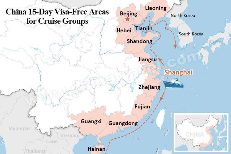 Since October 1, 2016, the 15-day visa-free policy has been operating for foreign tourist groups entering China from Shanghai by cruise.