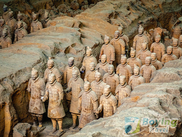 This morning, your guide and driver will pick you up at your hotel and take you to visit Shaanxi History Museum. Regarded as “the Pearl of ancient dynasties and house of Chinese treasures”, it has collections of 130,000 historical artifacts, showing visitors a miniature overview of thousand years of Chinese history and the splendid ancient cultures of old times. Enjoy the educational visit while exploring historical relics ranging from bronze ware from the Western Zhou Dynasty, and terracotta figures, to gold and silverware and murals discovered in Tang tombs. Later, pay a visit to the Tang-style Giant Wild Goose Pagoda, the landmark of Xian situated in the Da Ci’en Temple.