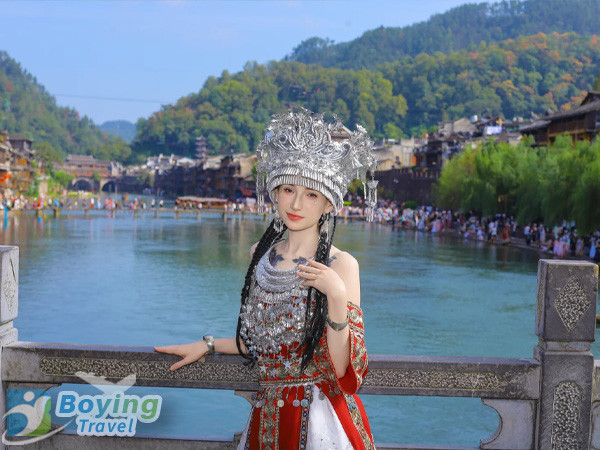19:00 Arrive at Fenghuang Ancient Town, check in at the riverside stilted building inn, take a night tour of the Tuojiang River in the evening, admire the beautiful scenery of the ancient town's lights reflecting on the river surface, and stroll around Hongqiao and Shen Congwen's former residence